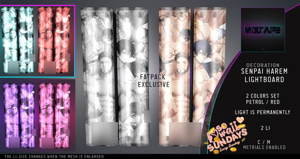 Please join the secondlife "SoKawaiiSundays" group to gain access to the salescard, ADs, surls, landmarks and a short description of each item on sale featured here. We can't wait to share with you Kawaii SL💖